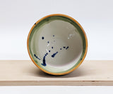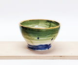 Bol en porcelaine à motifs verts, bleus et orange recouvert d'une glaçure transparente de qualité alimentaire.