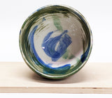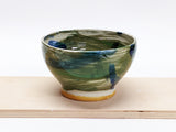Bol en porcelaine à motifs verts, bleu et orange recouvert d'une glaçure transparente de qualité alimentaire.